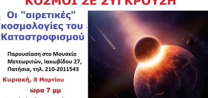 Η νεα ομιλία του Θανάση Βέμπου με θέμα ” Κόσμοι σε σύγκρουση : Οι αιρετικές κοσμολογίες του καταστροφισμού ” Κυριακή 8 Μαρτίου, ώρα 7 μμ, στο Ελληνικό Μουσείο Μετεωριτών